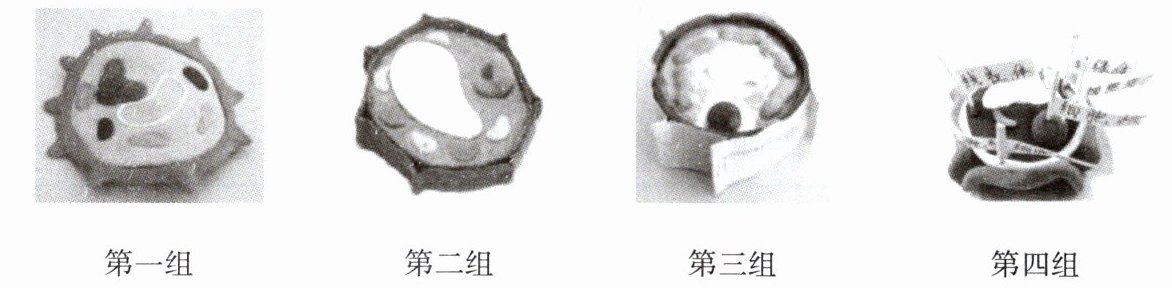 下面分别是四个小组以无毒无味的橡皮泥为主要材料制作的植物细胞结构模型,请你对下列四组模型进行评价,参考老师提出的第①③④点建议。