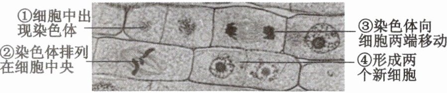 使用显微镜观察洋葱根尖细胞分裂的装片,结合教科书图2-1或下图,找到细胞分裂的区域,观察细胞分裂时不同细胞中染色体的状态。