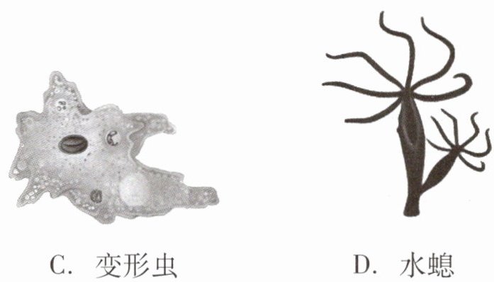 2. 如图是某兴趣小组在池塘水中看到的四种微小生物,其中属于单细胞生物的是( )