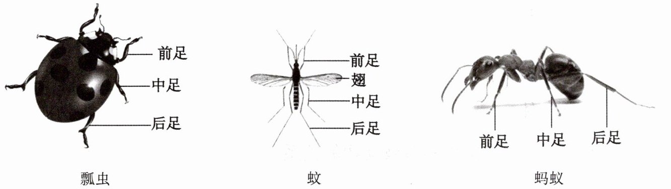 1.(1)前足 中足 后足 三 前翅 后翅 具有两对翅,三对足