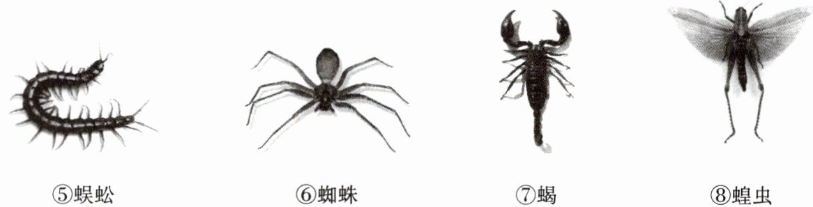 2. 观察下面几种不同节肢动物的标本或图片,识别一下它们是否属于昆虫?并说明原因。