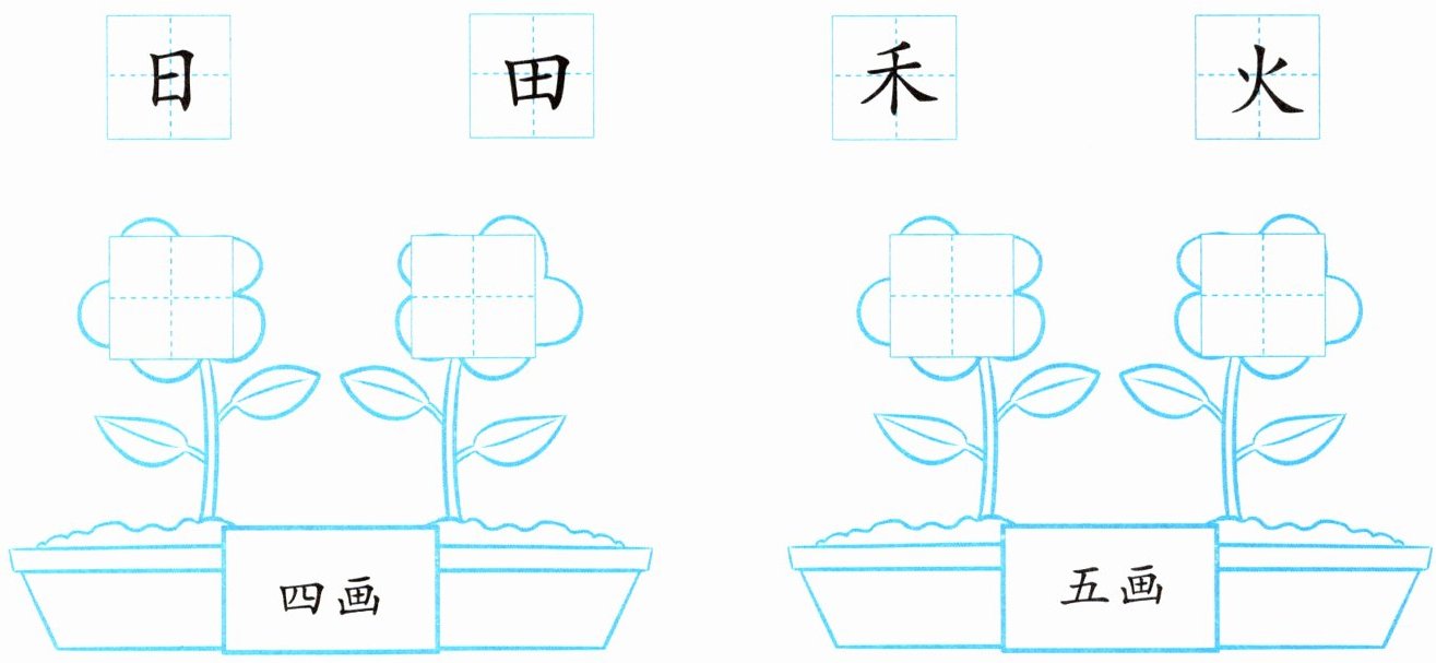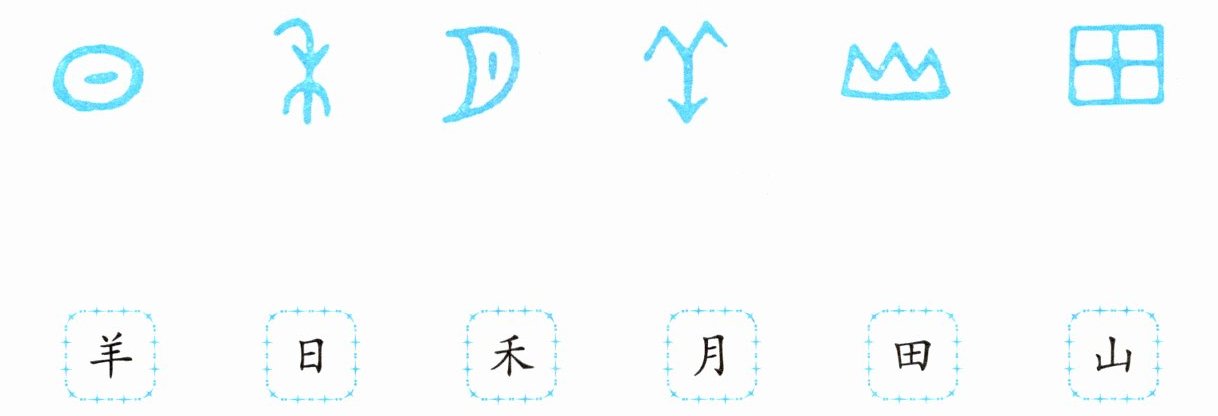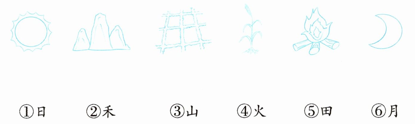 ①日 ②禾 ③山 ④火 ⑤田 ⑥月