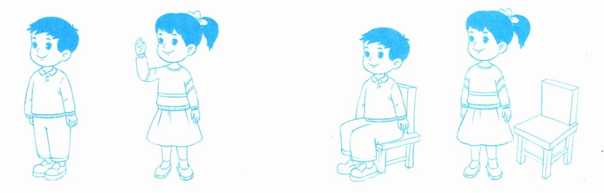 5. 一个人说口令,另一个人做动作。谁做得对,就在他(她)下面的( )里画“”吧。