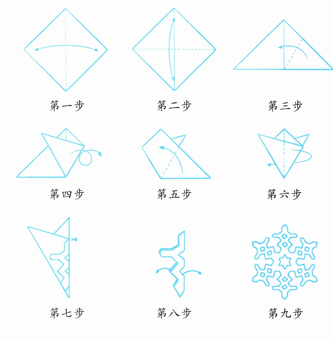 (2)请你跟着下面的步骤图,学习剪窗花吧。