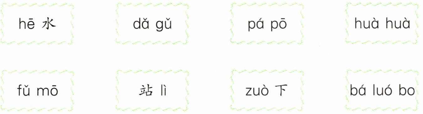 8. 同桌A指“bá luó bo”,同桌B做“拔萝卜”的动作。