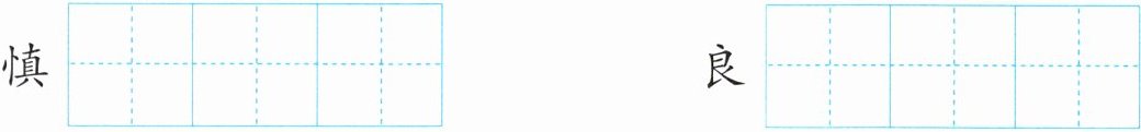慎(工整书写在田字格中,左窄右宽,“忄”先写点和点,再写竖;“真”注意笔画书写)
