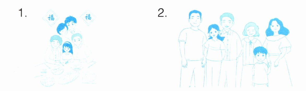 三、听录音,选出欢欢家的全家福,在相应的图片下面画“√”。