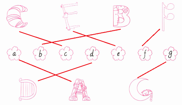 2. 看图猜字母,将图片与对应的小写字母连线。