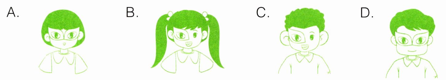 ) 2. I am a girl. I have short hair. I have a small mouth.(