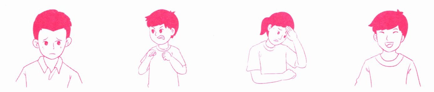 四、看图片,从方框中选择相应的句子,将序号填在图下括号里。