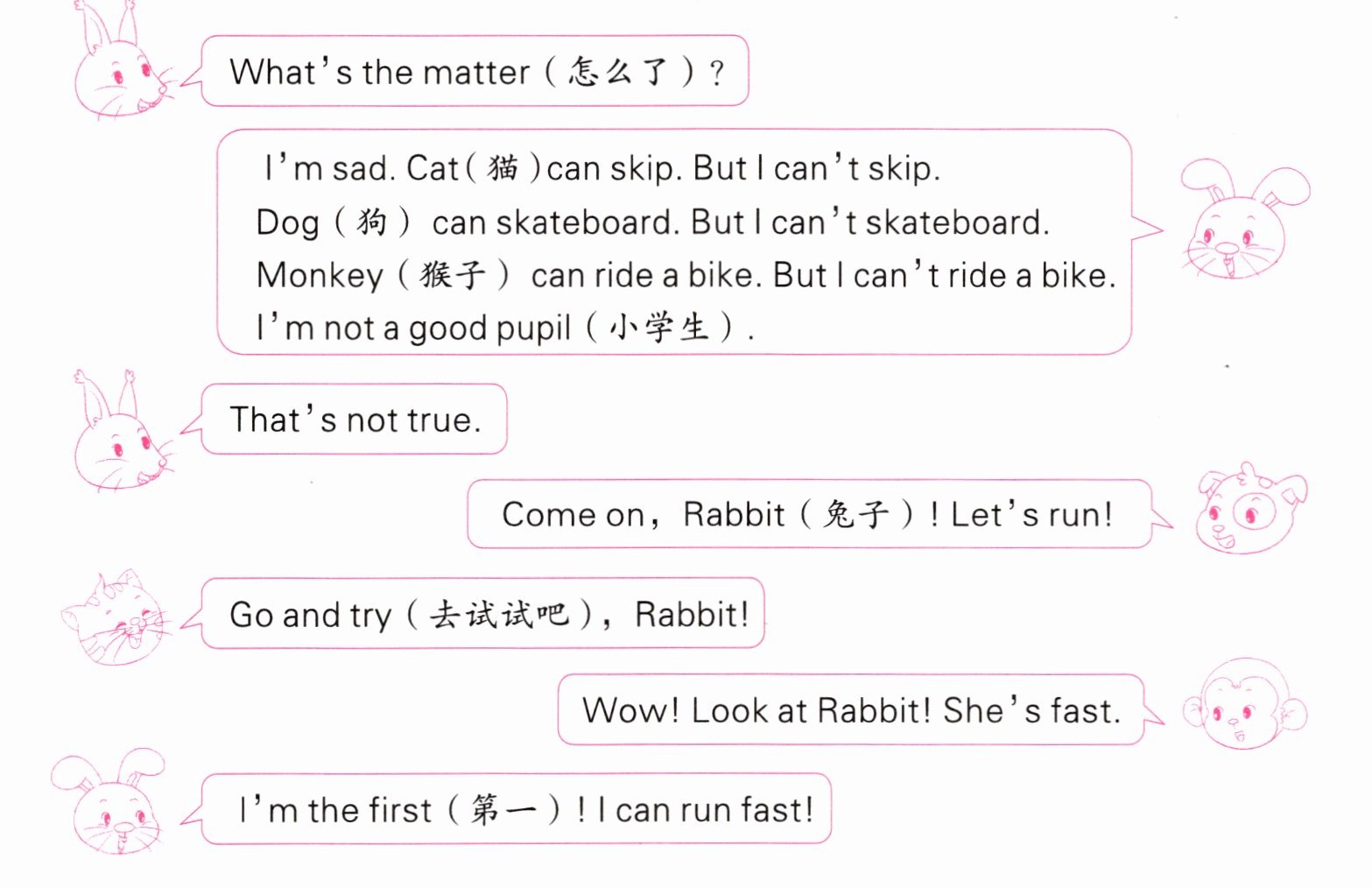 ) (4) Cat can skip.2. 读完故事后,你悟出了什么道理?写一写你的想法吧。