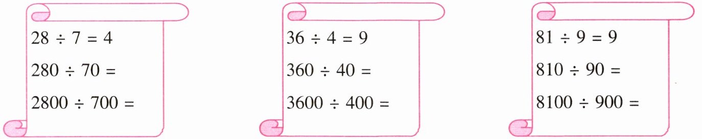 1. 根据第一个算式的商快速写出下面两个算式的商。