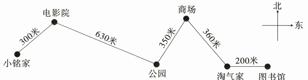 )米。(6)小铭家到图书馆共行多少米?如果他每分步行 80 米,25 分后他能不能到达图书馆?
