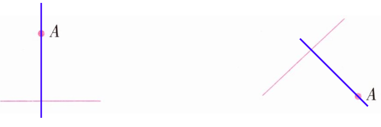 3. 过$ A $ 点分别画出两条已知直线的垂线。