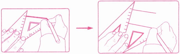 1. 将直尺固定,用三角尺的一条直角边紧贴直尺边缘。