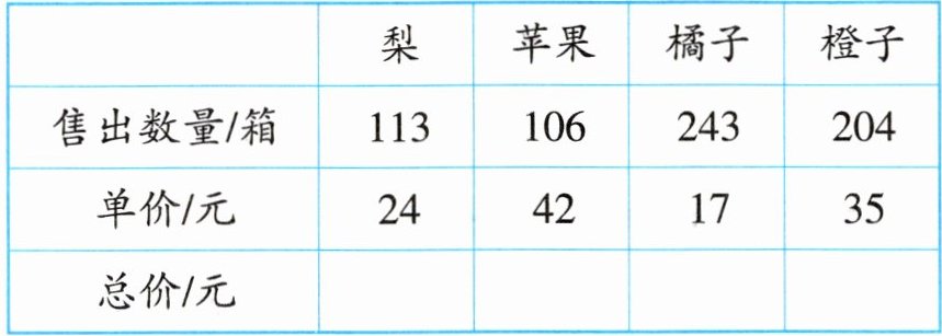 3. 下面是水果批发部某一天的销售记录。你能算出每种水果各卖了多少元吗?