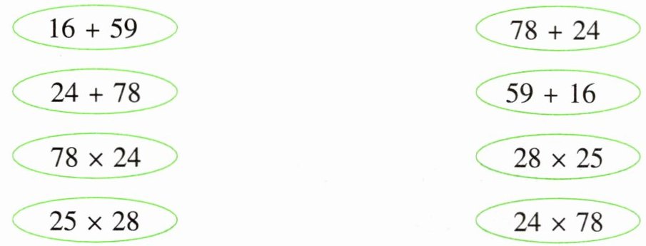 将$16 + 59$与$59 + 16$相连;$24 + 78$与$78 + 24$相连;$78×24$与$24×78$相连;$25×28$与$28×25$相连。