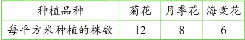 如果种菊花,一共要购买多少株菊花苗?如果种月季花或海棠花呢?