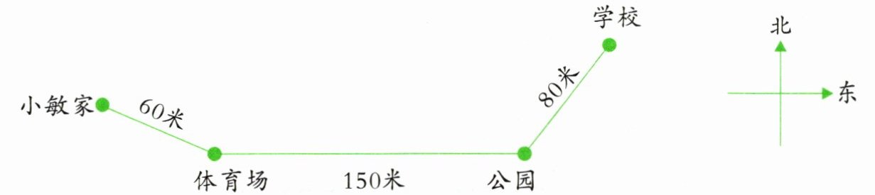)米到达学校。(2)小敏放学的路线:小敏从学校出发,向(