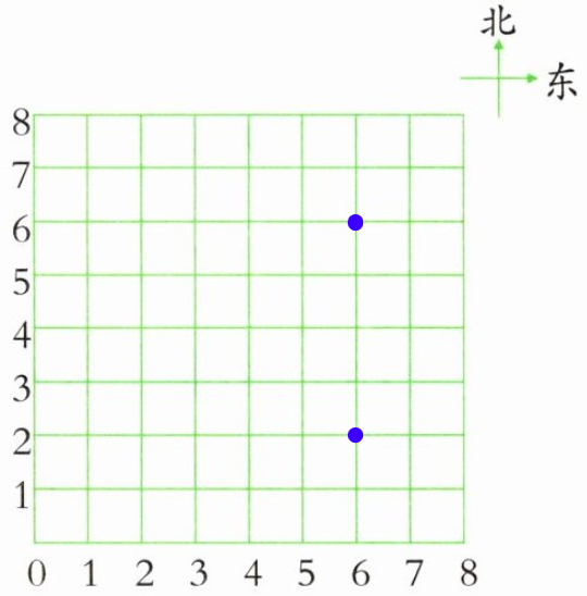 4. 野生动物保护小组先测得一匹野马的位置是$(6,2)$。3时后,测得这匹野马的位置是$(6,6)$。