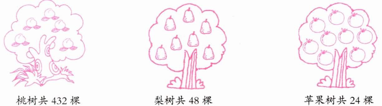 4. 星期天,小明到果园去采摘,他仔细地数了数果树,结果如下: