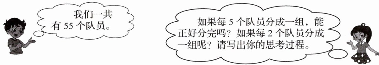 答:每5个队员分成一组能正好分完,因为55是5的倍数;每2个队员分成一组不能正好分完,因为55不是2的倍数。