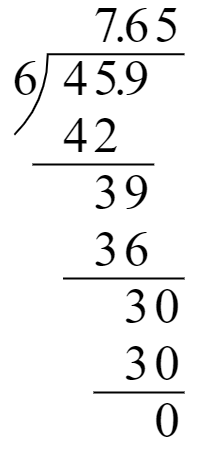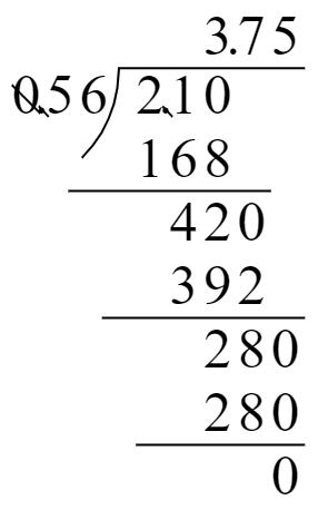 (1)$62.9÷17$ (2)$45.9÷6= $ (3)$2.1÷0.56$