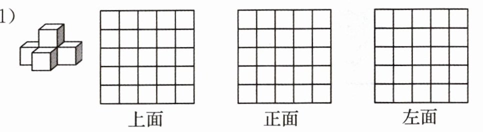 1. 请根据左图的立体图形分别画出从上面、正面、左面看到的形状。