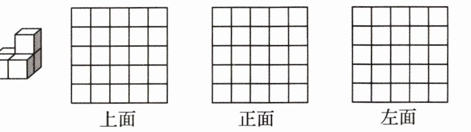 3. 现要搭一个立体图形,从正面看到的形状是$\begin{array}{ccc}□ & □ & □ \\ & □ & \end{array}$\begin{array}{ccc}□ & □ & □ \\ & □ & $,从上面看到的形状是$\begin{array}{ccc}□ & □ & □ \\ □ & & \end{array}$\begin{array}{ccc}□ & □ & □ \\ □ & & $,最少要用几个小立方块?试着搭一搭,说一说。