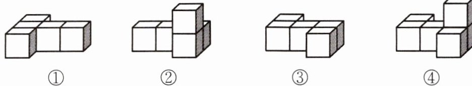 (2)( )号和( )号从正面看到的形状是$\begin{array}{ccc}□ & □ & □ \end{array}$\begin{array}{ccc}□ & □ & □ $,( )号和( )号从正面看到的形状是$\begin{array}{ccc}□ & □ & □ \\ & □ & \end{array}$\begin{array}{ccc}□ & □ & □ \\ & □ & $。