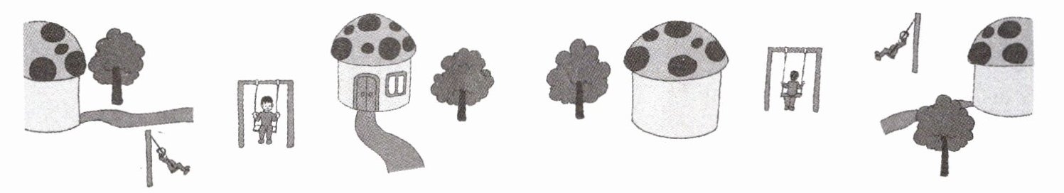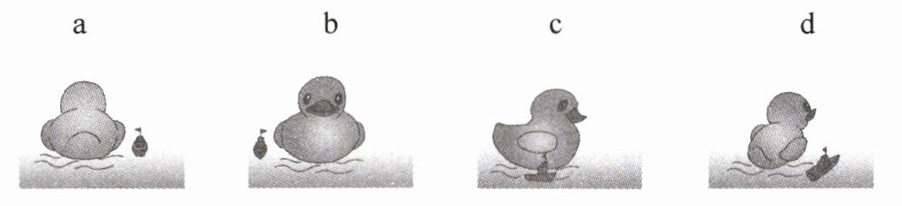 1. 笑笑到公园看大黄鸭,从大黄鸭背面开始参观,请你排列出下面这四幅图片的先后顺序。(填字母)