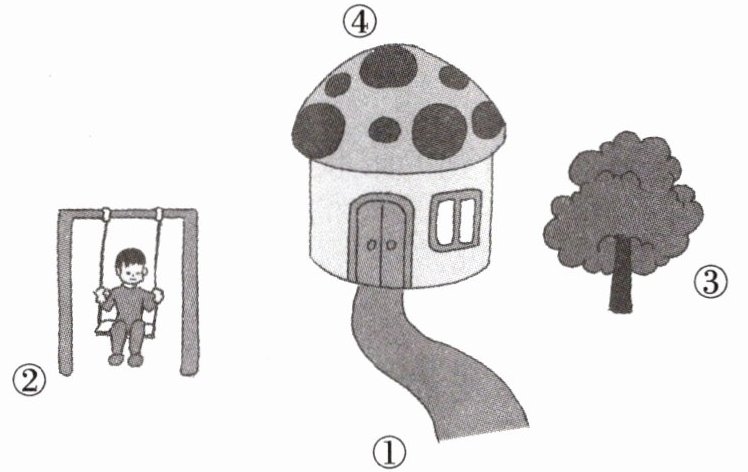 下面四幅照片,分别是站在①②③④哪个位置拍摄的?(填序号)