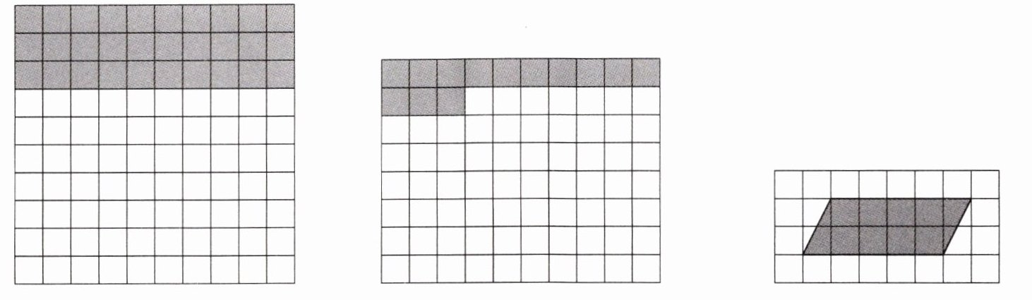 3. 分别用分数、小数、百分数表示下面各图的阴影部分各占整幅图的多少,写在下面的横线上。