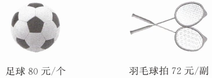 |足球 80 元/个|羽毛球拍 72 元/副|
