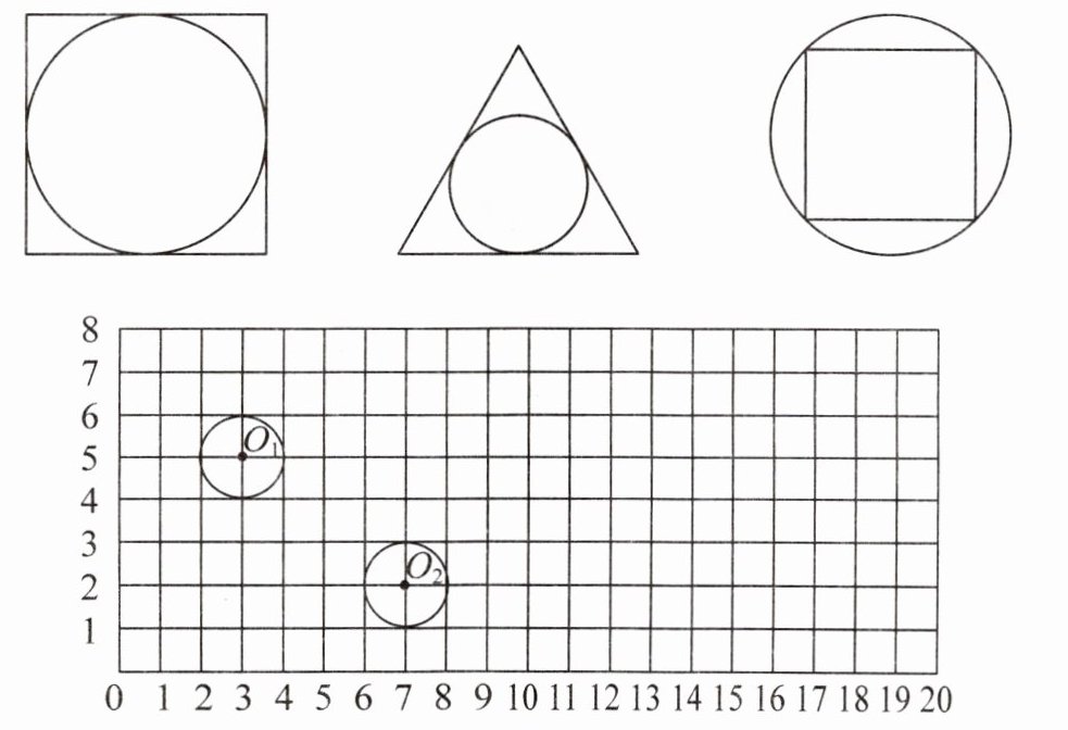 (2)以点 $ O_3(12,4) $ 为圆心画一个圆,使其半径是圆 $ O_2 $ 的 2 倍。
