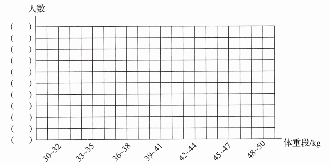 (统计图坐标中,横轴表示体重段/kg,纵轴表示人数,从下到上依次有9个括号)