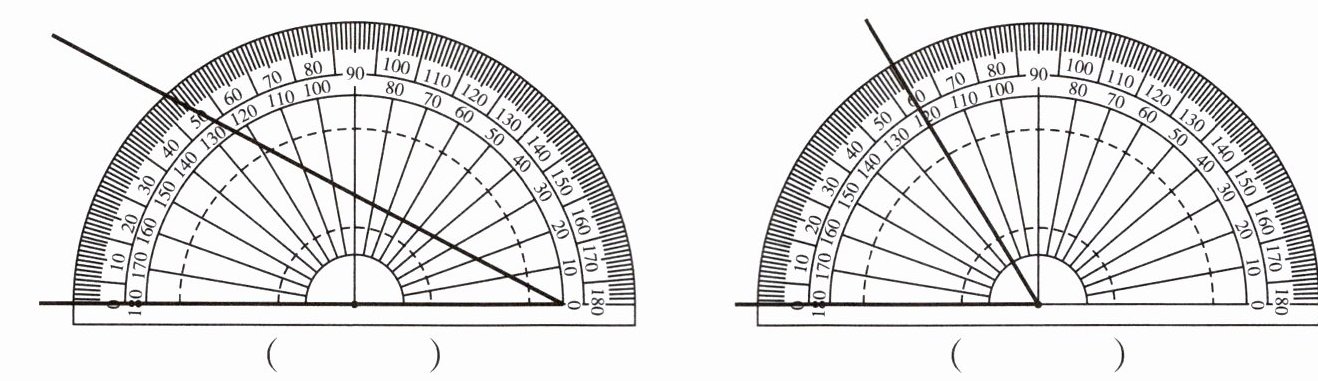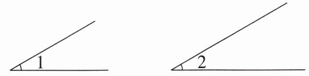 四、量出下面两个角的度数,并比较它们的大小,说一说你发现了什么?