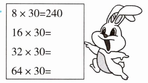 $\begin{array}{l}8 × 30 = 240 \\16 × 30 = \\32 × 30 = \\64 × 30 = \end{array} $