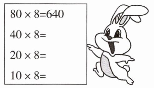 $\begin{array}{l}80 × 8 = 640 \\40 × 8 = \\20 × 8 = \\10 × 8 = \end{array} $