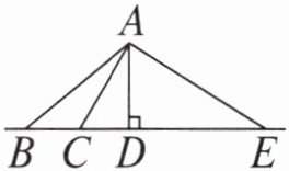 2. 如图,从点A到直线BE的线段中,最短的一条是( )。