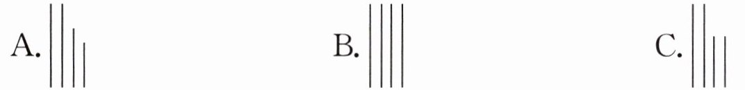 1. 下面各组中的4根小木棒不能围成平行四边形的是( )。