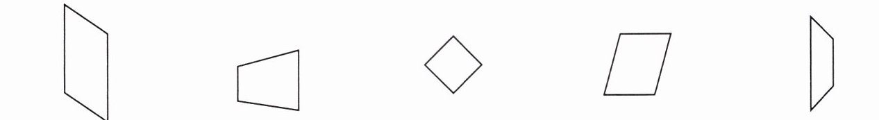 一、在平行四边形的下面画“△”,梯形的下面画“○”。