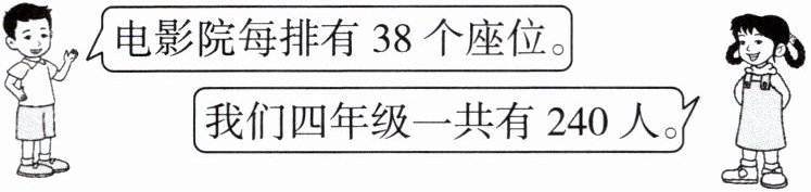 4. 学校组织四年级学生去电影院看电影。可以坐满几排?还剩几人?