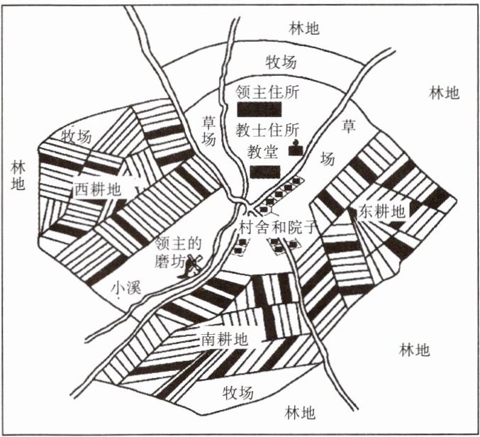 (1)根据材料一并结合所学知识,中世纪的庄园都有哪些不同种类的耕地?