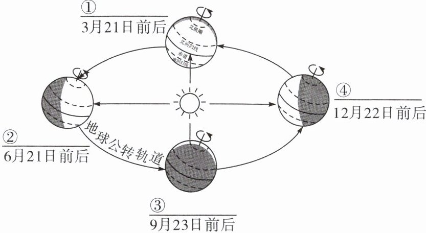 2. 读地球公转示意图(图中二分二至日均指北半球而言)和教科书第 24 页,完成下列各题。