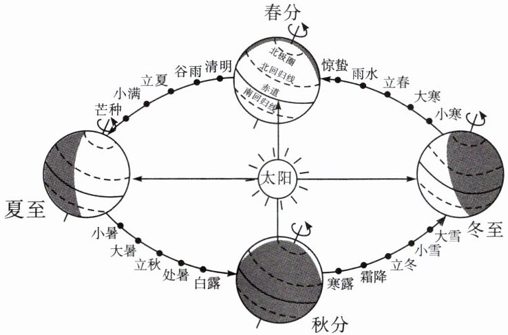 2023年11月7日至11日,二十四节气花馍亮相2023黄河非遗大展。读二十四节气示意图,完成5~6题。
