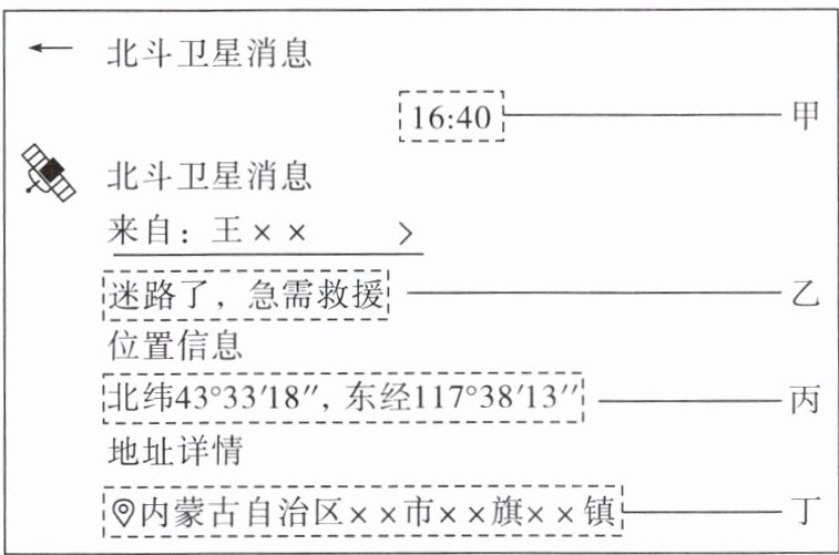 6. 图中的丙信息,体现了北斗卫星导航系统的(