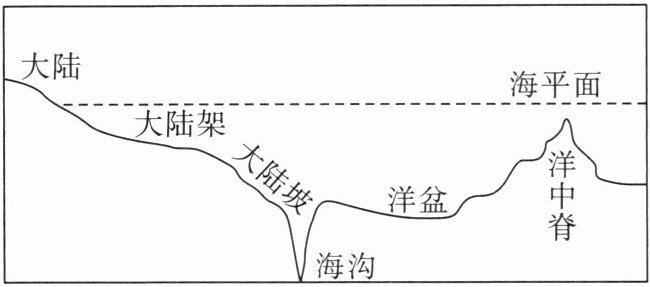 1.大陆架 200 2.大陆坡 洋中脊 海沟