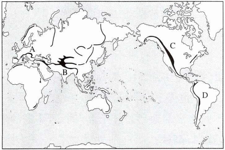 高原是世界上海拔最高的大高原。(3)山脉 A 是