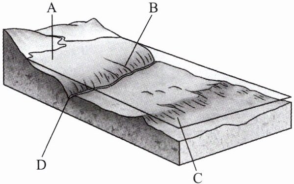 1.B 2.D 解析 第1题,海沟是大洋底部最深的地方,常常出现在大陆坡与洋盆的交界处。第2题,大陆架是海洋生物资源、矿产资源丰富的地方,应合理开采,不能完全禁止开采,①错误。